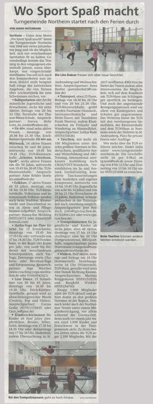 Die TGN mit ihren Sportabteilungen in der HNA vom 29. August 2021... und wir sind natürlich auch dabei!