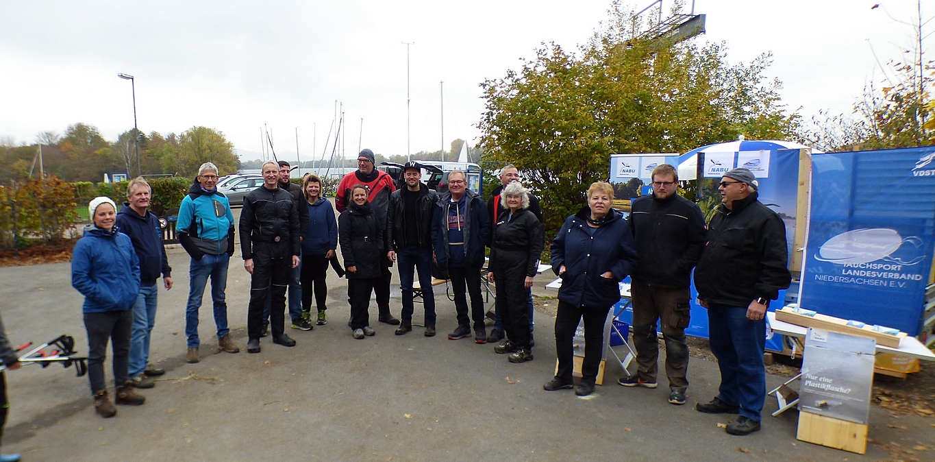 Anfang November trafen sich einige Taucher der TG Northeim gemeinsam mit Vertretern des NABU am Großen Kiessee zur gemeinsamen Aktion „Abtauchen zum Aufräumen".